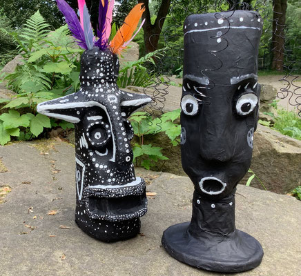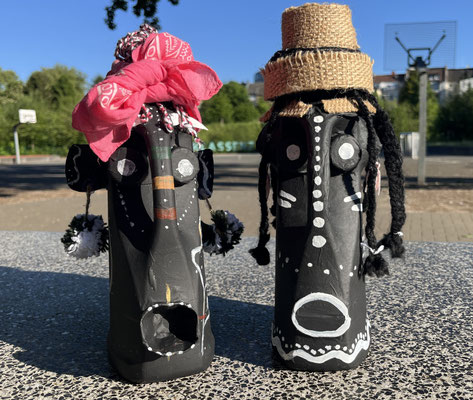 Die Schüler:innen der 9. Jahrgangsstufe erstellten unter der Leitung von Kathrin Feuler ausdrucksstarke Plastiken aus Zivilisationsmüll, indem sie sich von zeitgenössischen afrikanischen Künstler:innen inspirieren ließen.