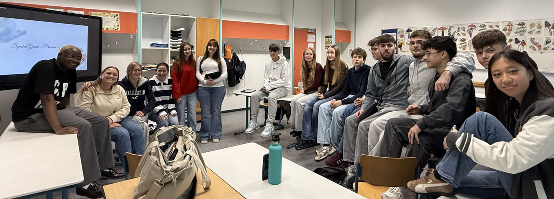 Da der Sänger Promise of the Lord selbst religiöse Musik macht, kam Aurelia auf die Idee, ihn einfach direkt über Instagram anzuschreiben – und tatsächlich: Er sagte zu und besuchte den Unterricht! Während seines Besuchs erzählte er von seinem musikalischen Weg, seinem Glauben und davon, wie er durch seine Songs Menschen berühren möchte. Besonders spannend war, dass er offen und ehrlich auf alle Fragen der Klasse einging – auch auf die kritischen. Das Gespräch war inspirierend und hat gezeigt, wie Musik Brücken zwischen Menschen bauen kann – unabhängig von Alter, Herkunft oder Glaubensrichtung. Ein herzliches Dankeschön an Promise of the Lord für den Besuch!