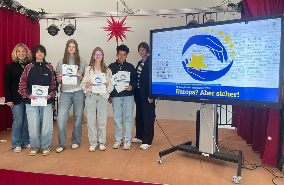 Beim 72. Europäischen Wettbewerb konnten die Schülerinnen Tamara Khokhlova, Frieda Meinert, Marla Noll und der Schüler Loris Agbolo der 9. Jahrgangsstufe die Jury auf der Landesebene überzeugen und holten gleich vier Preise ans Phoenix-Gymnasium.