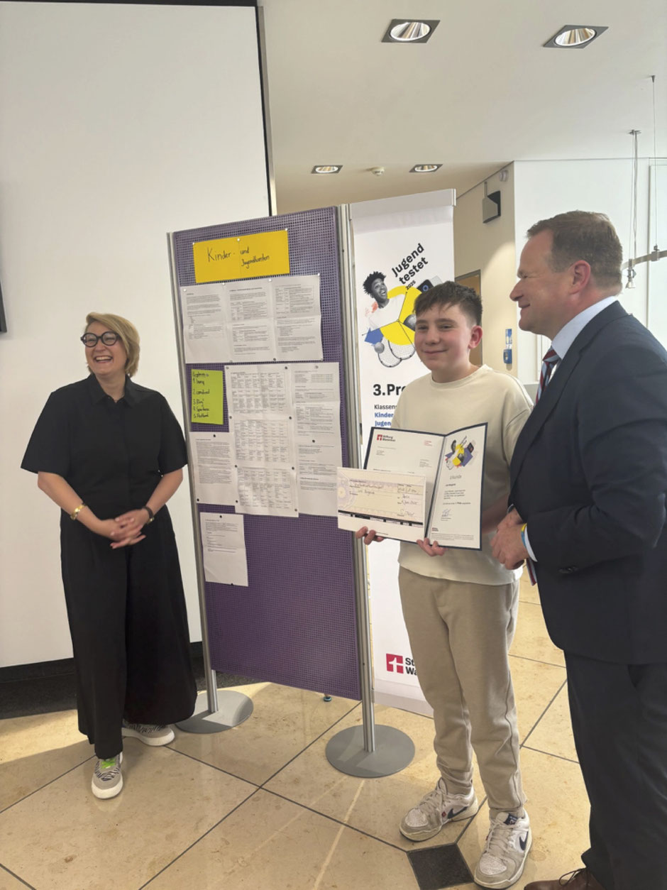 Maximal konnten 215 Punkte erreicht werden – und Lenn analysierte dabei gründlich, transparent und mit kritischem Blick: Zwar waren alle getesteten Konten mindestens „gut“, doch es zeigte sich auch, dass viele Anbieter in Sachen Transparenz und Auskunftsfreude noch Luft nach oben haben. Für diese fundierte und lebensnahe Untersuchung wurde Lenn im Haus der Stiftung Warentest in Berlin ausgezeichnet. Dort erhielt er seinen Preis von niemand Geringerem als Prof. Dr. Tim Engartner, Professor für ökonomische Bildung an der Universität Köln, sowie dem Parlamentarischen Staatssekretär Frank Schwabe vom Bundesministerium der Justiz und für Verbraucherschutz. Neben der Preisverleihung erwartete Lenn ein spannendes Rahmenprogramm in Berlin – ein verdienter Höhepunkt nach wochenlanger Recherche- und Auswertungsarbeit. Wir gratulieren Lenn herzlich zu diesem großartigen Erfolg und sind stolz, dass eine so praxisorientierte Idee aus dem Schulalltag heraus zu einer der besten Arbeiten des
