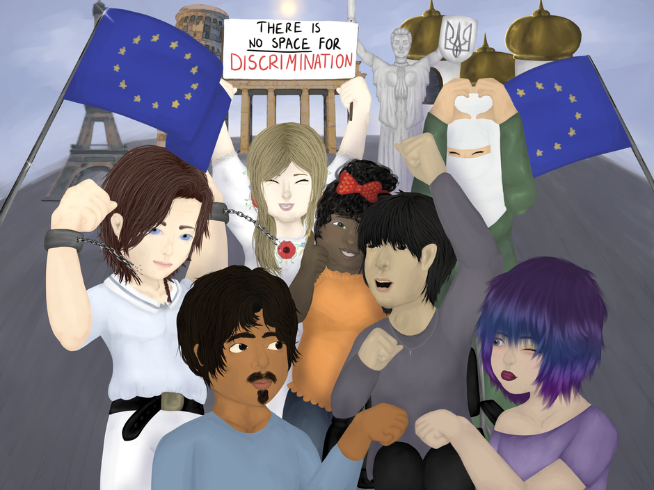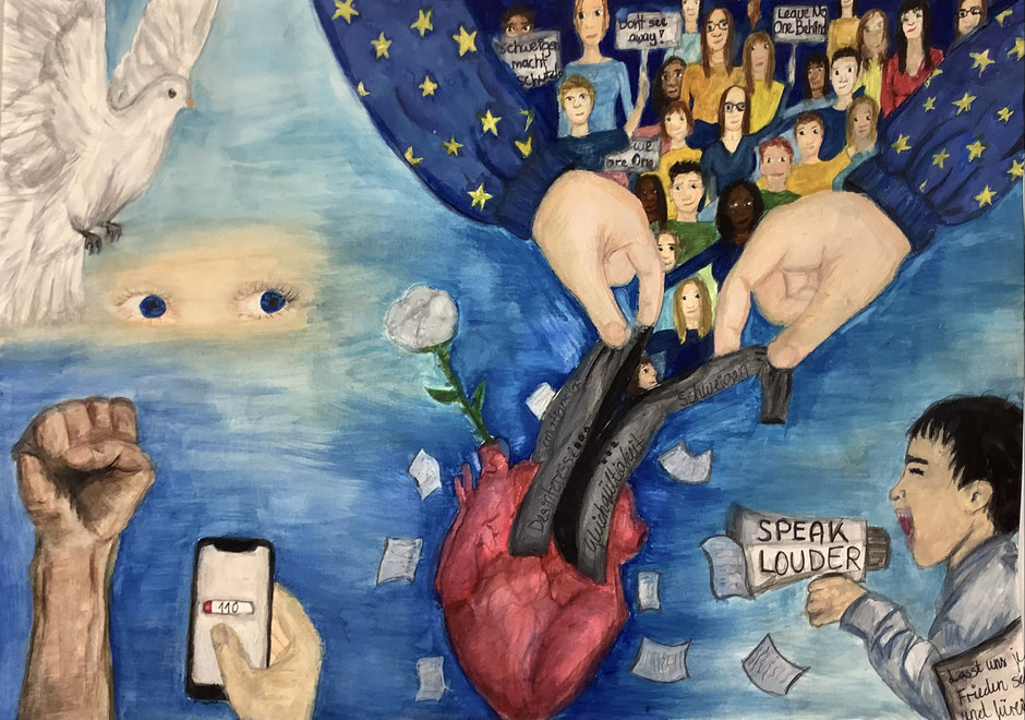 Kommentar von Frieda Meinert zu ihrem Werk: Im Alltag bekommen wir Situationen mit, in denen wir das Gefühl haben, einschreiten zu